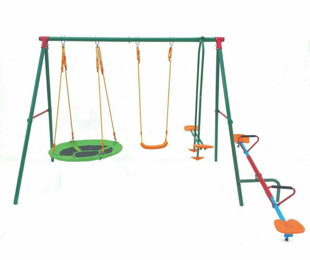 Материал сидений качелей - пластмасса, устойчивая к воздействию солнечных лучей.