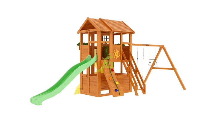 Это уже не просто спортивно-развлекательный комплекс, а почти двухуровневый дом с игровыми элементами! Комплекс «Клубный домик 2» разработан компанией IgraGrad (Играград) по эскизам европейских фабрик. Это эксклюзивная конструкция, которая впишется в любой ландшафтный дизайн, предусматривающий игровую зону.