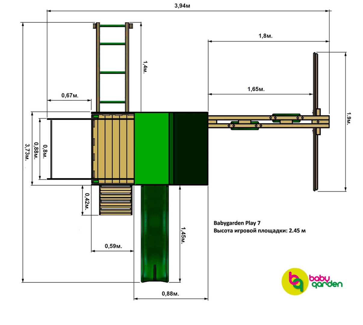 Игровая площадка серии "BabyGarden Play" - доступное решение для экономных и требовательных родителей. Комплекс оборудован всем необходимым для веселых и увлекательных игр Ваших детей.