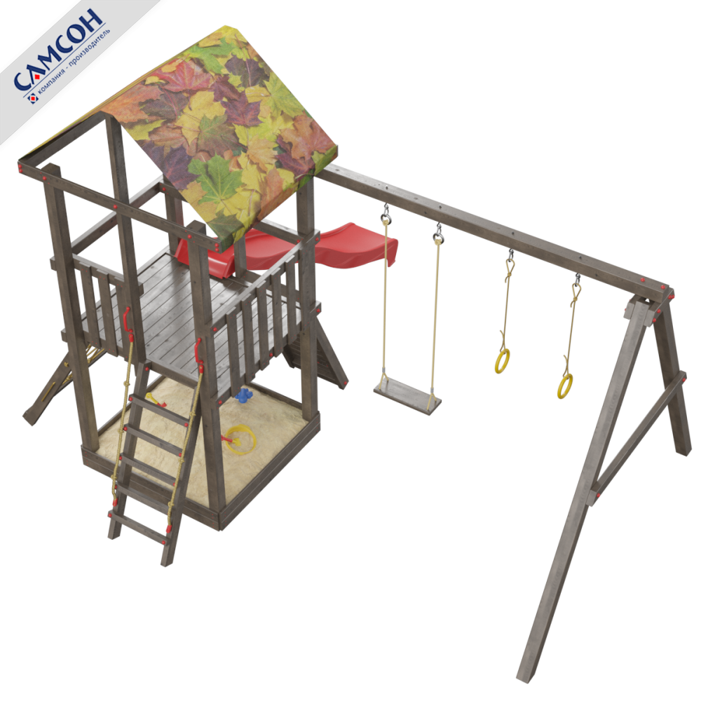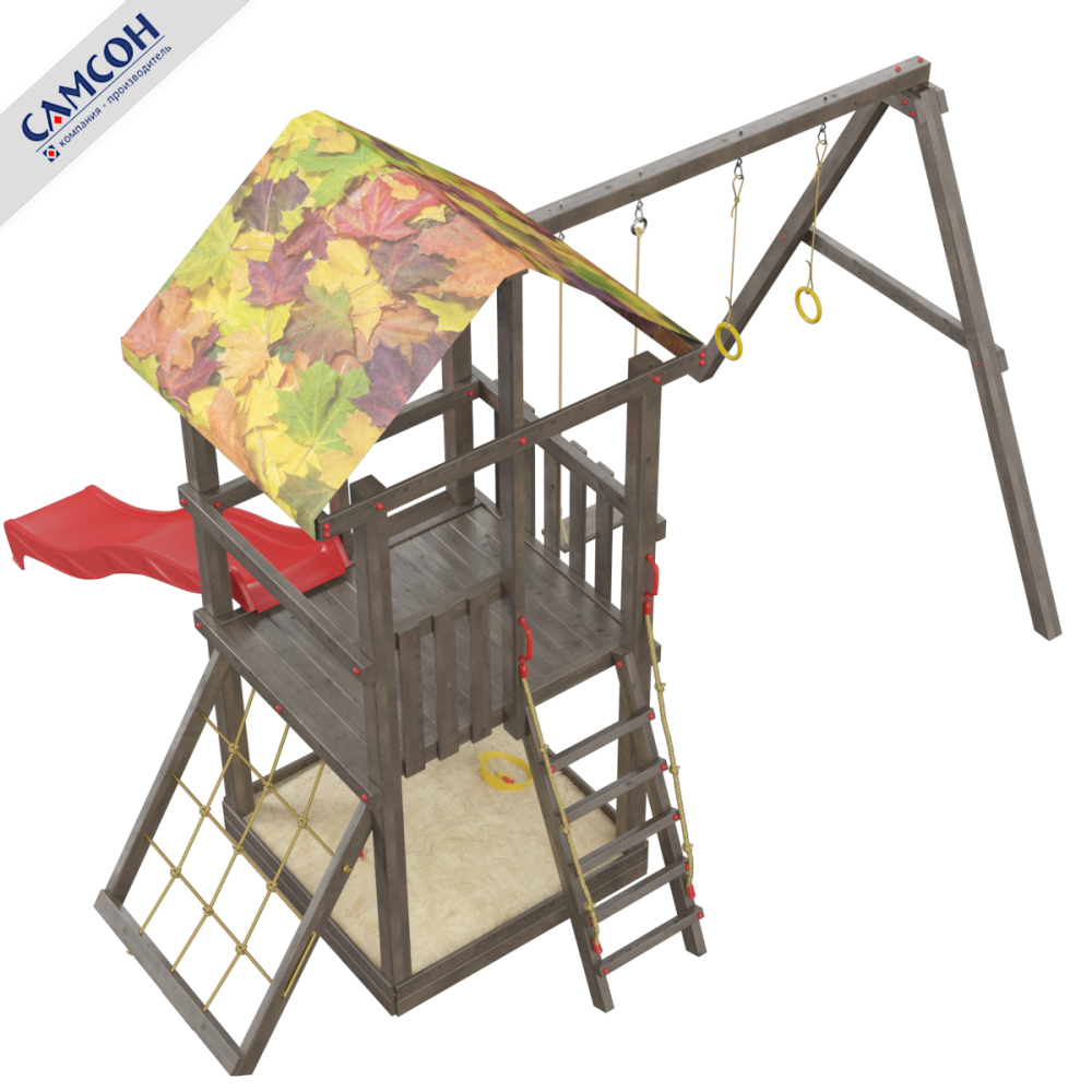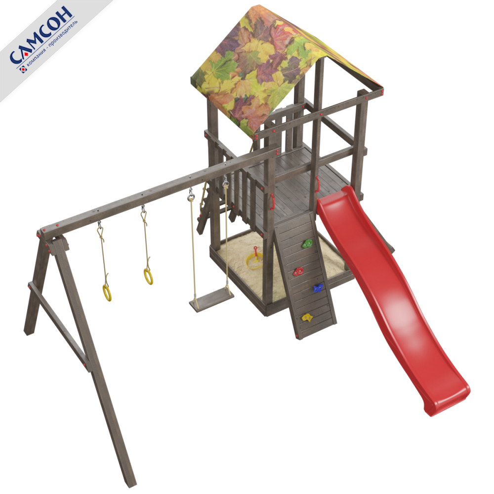 Детская игровая деревянная площадка для частного использования, для детей от 4 до 9 лет, на которой расположены элементы игрового оборудования с целью организации содержательного досуга детей, способствующие физическому и умственному развитию, оказывающие при этом благоприятное воздействие на социальную адаптацию ребёнка.