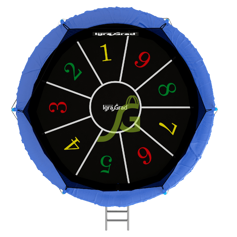 Красочная разметкаБатуты с диаметрами 244 см, 305 см и 366 см на прыжковом полотне имеют красочную разметку для увеличения интереса и вариантов игр на батуте.