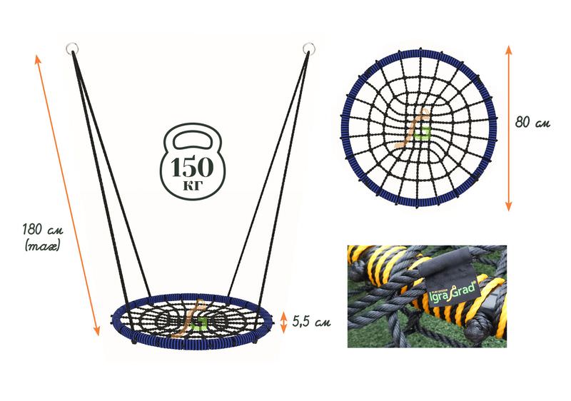 - длина веревок подвеса без узлов крепления: 2,1 м;