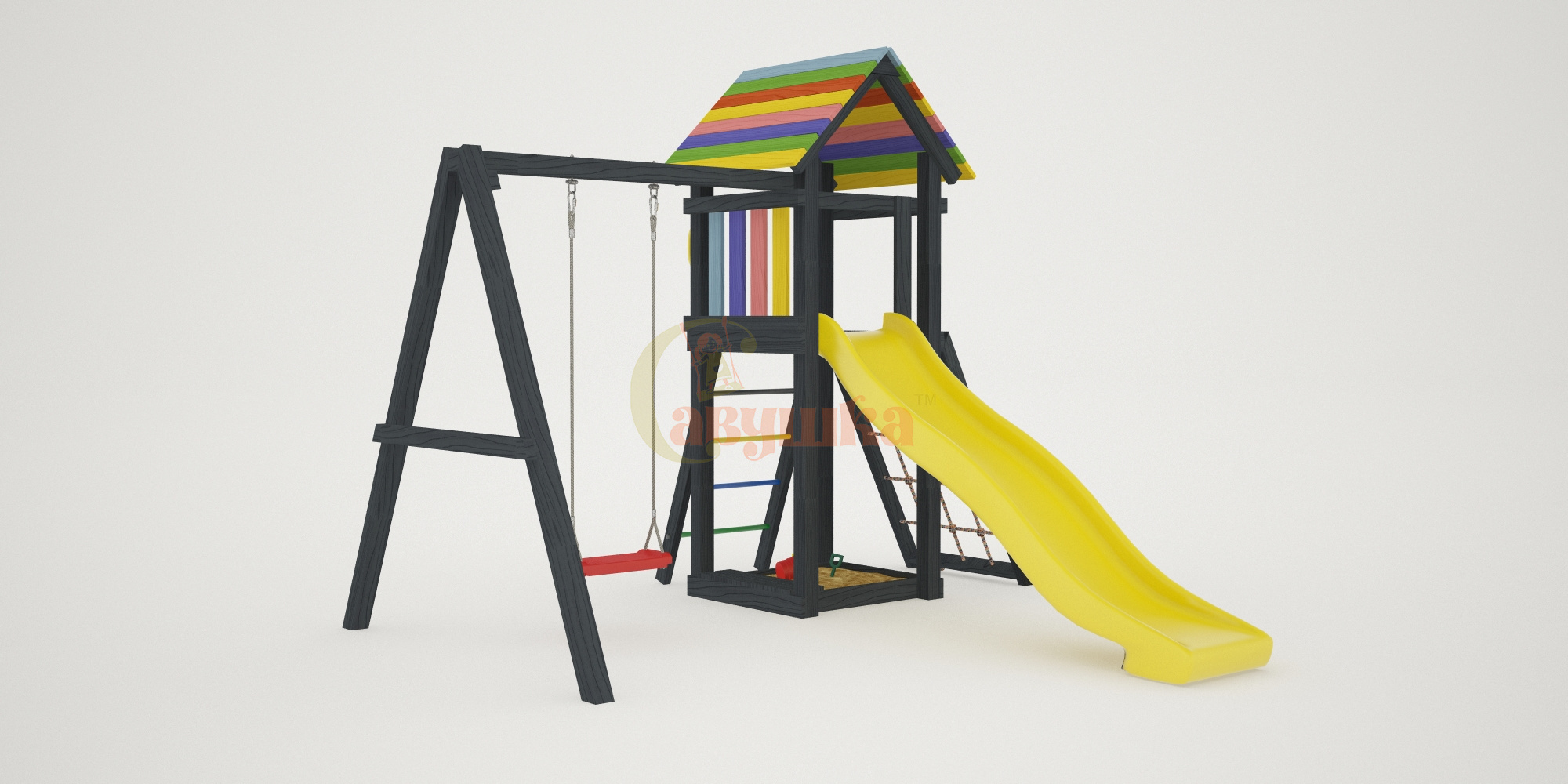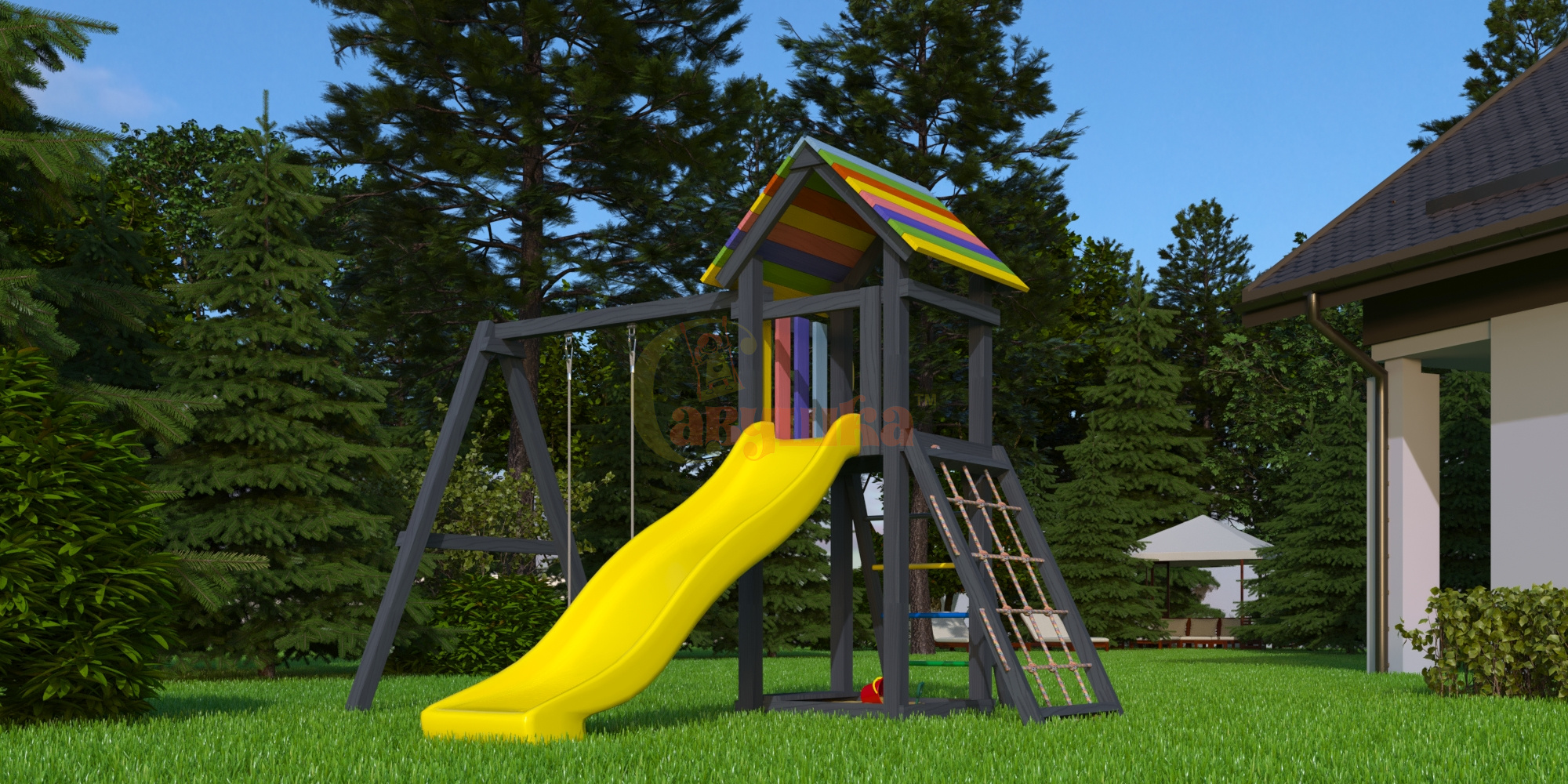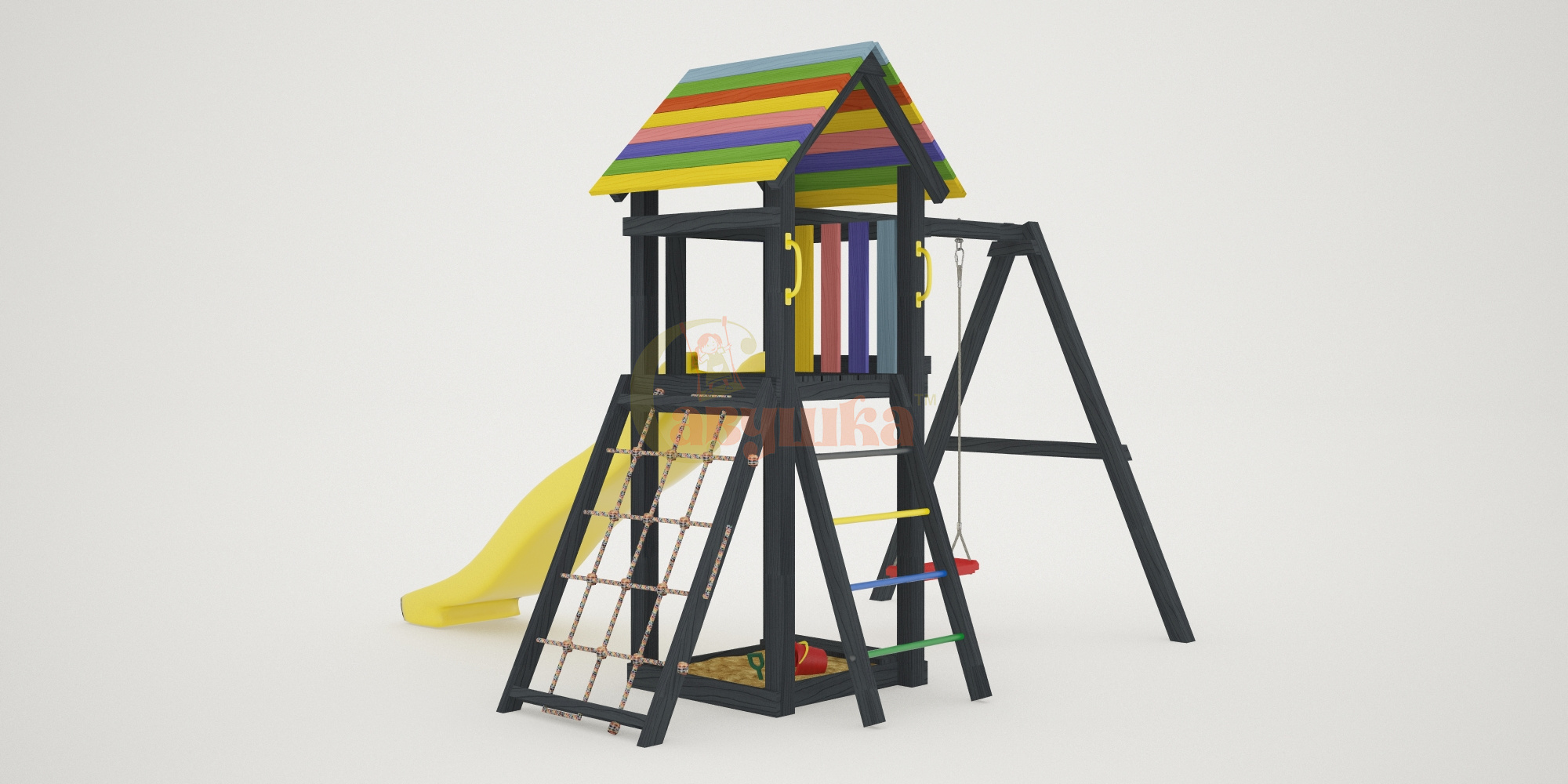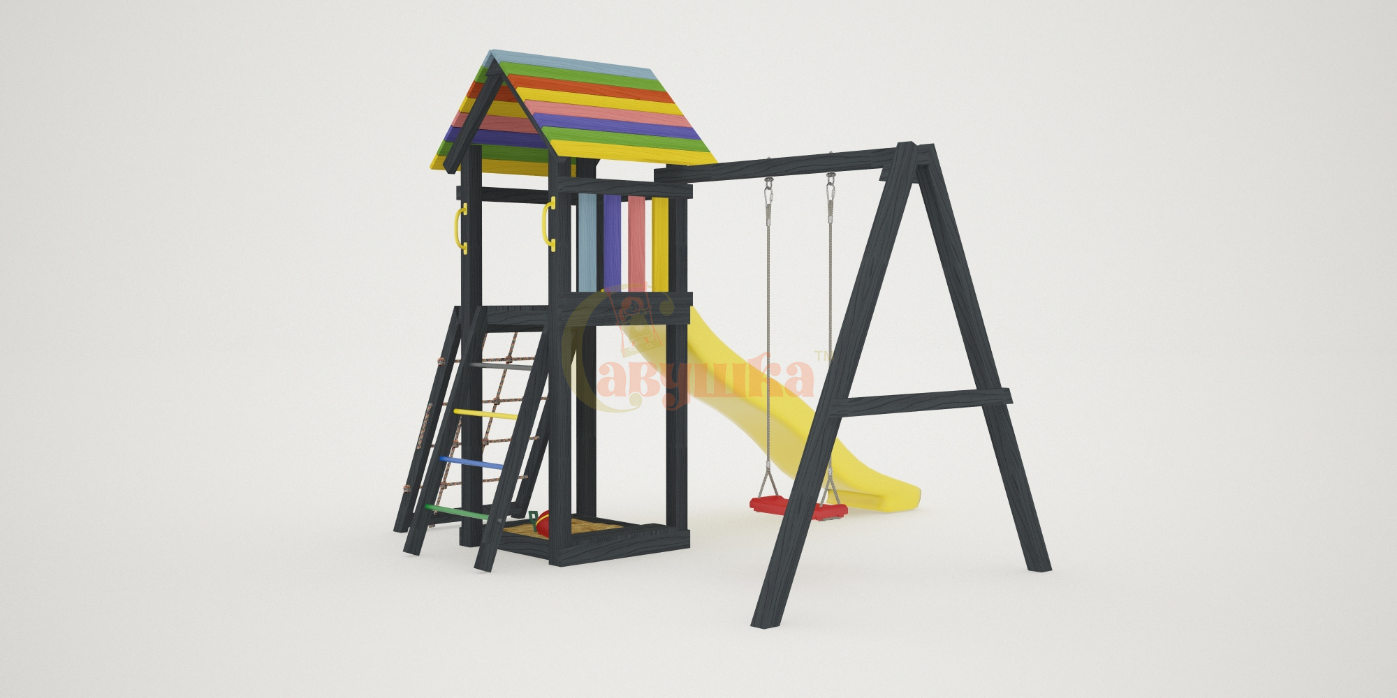 Детский игровой комплекс САВУШКА 7 BLACK EDITION - это деревянная площадка премимум-класса в стильном, продуманном дизайне. Площадка включает в себя все необходимое для веселых игр на свежем воздухе: качели, горка, песочница и сетка-лазилка.