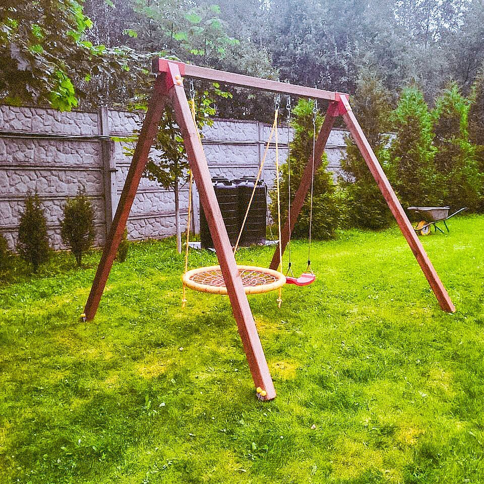 - Размеры качелей: Глубина 2.95 Ширина 3.3 Высота 2,2 м.
