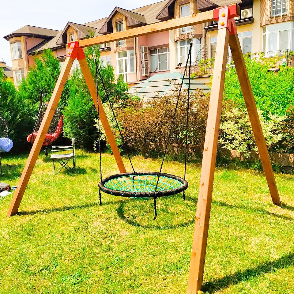 - Размеры качелей: Глубина 2.95 Ширина 2.9 Высота 2.2 м.