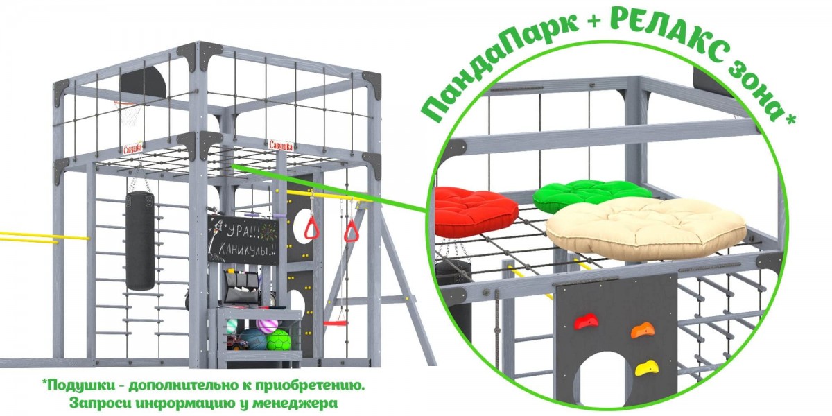 - Подушки на верхнем уровне — идеальны для отдыха между активными играми. Дети могут устроиться поудобнее, полистать книжку или просто понаблюдать за окружающим.