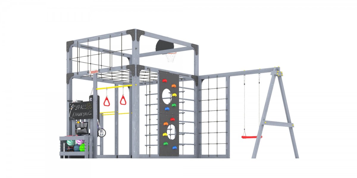 Представляем детскую игровую площадку Савушка КУБ-6 в цвете Серый — инновационный комплекс, объединяющий спорт, игру и отдых для всей семьи. Этот многофункциональный комплекс создан для гармоничного физического развития детей и активного семейного досуга.