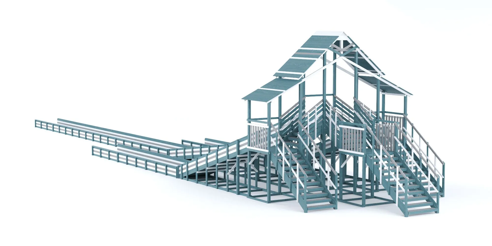 - Абсолютная безопасность: широкие и устойчивые ступени с анти-скользящим покрытием и высокие ограждения обеспечат защиту Ваших детей.