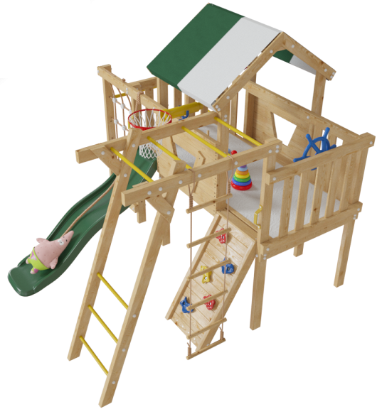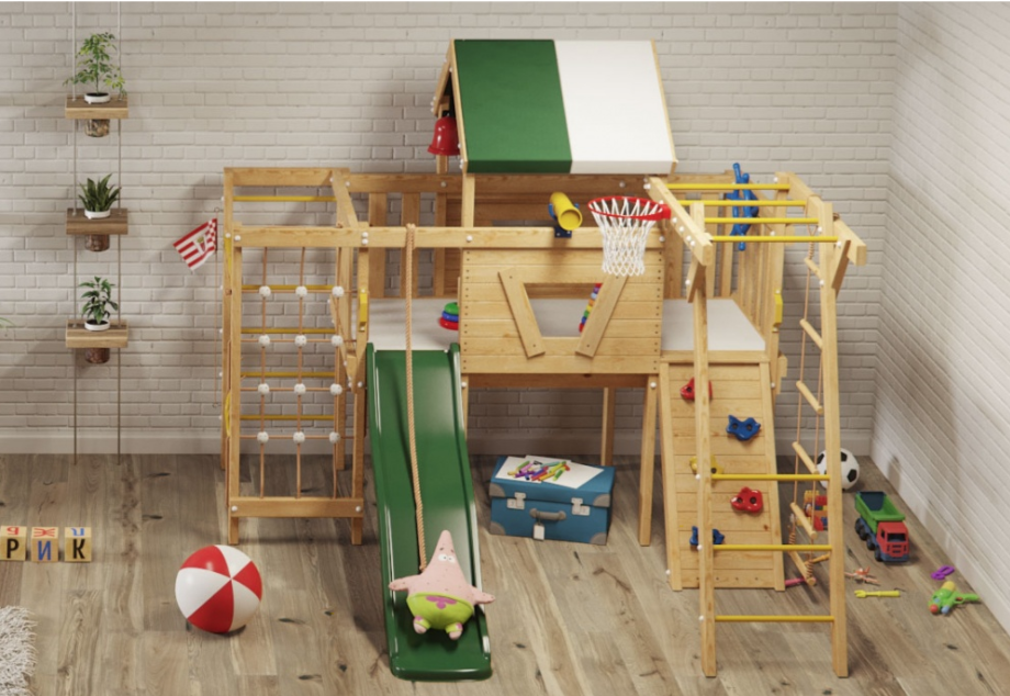 Товар упакован в гофрокартонные короба: 7 мест + горка. Занимаемая площадь 3,5м х 3,5м. Товар поставляется в разобранном виде. Прилагается подробная инструкция по сборке. Мат в стоимость и комплект поставки не входит.