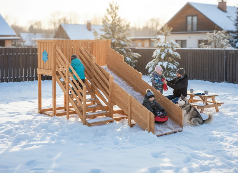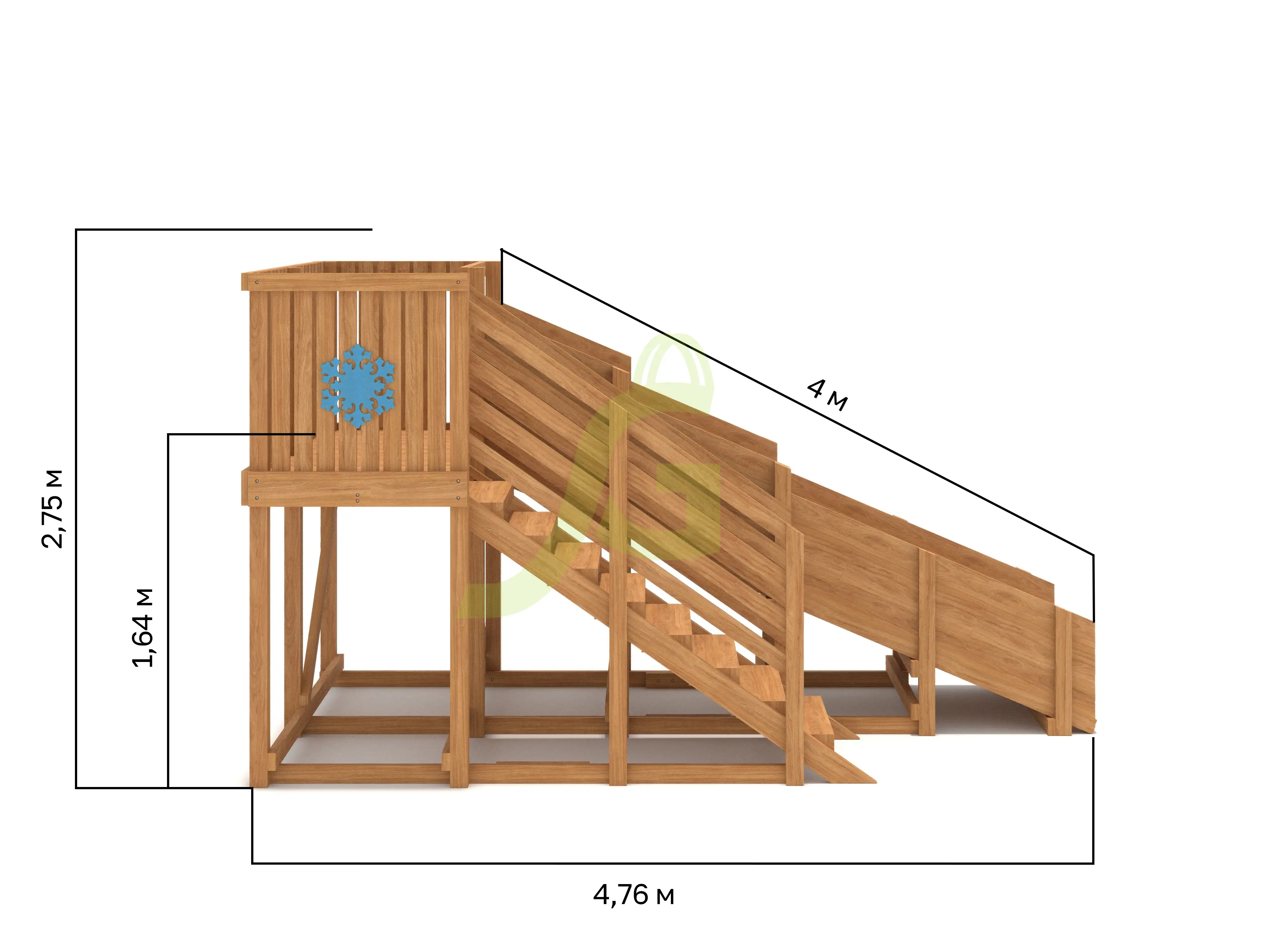 - Деревянная зимняя горка "IgraGrad Snow Fox", скат 4 м